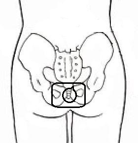 和紙を5枚程(古布でも)挟んで尾骨の上に載せる。